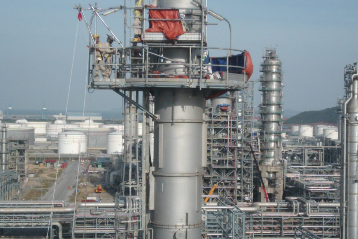 In October 2019, Frontier E&C finished the modification work of 15 stacks and chimneys for installation additional equipment for NSRP client. The request from NSRP is the modification and installation of 64 sets additional equipment in current stack and chimney with the height from 60 meters to more than 100 meters within 10 days during Defect Confirmation and Shutdown Maintenance (DCSM) phase. The client first priority is completion the work with Zero Incident and Zero Defection. At beginning, the mission seem like impossible for any experienced Project Manager and his team.